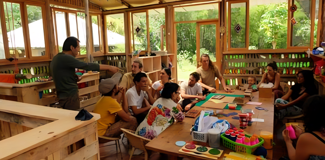 Visitamos aulas abiertas, espacios comunes y proyectos en marcha. Ideal para una primera aproximación a la ecoaldea.